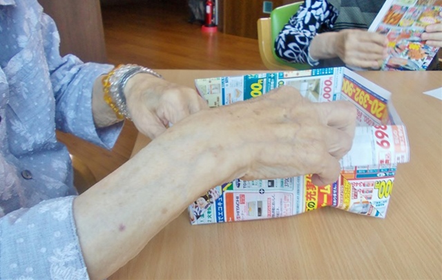 ということで始めたのは・・・チラシでゴミ箱作り!!