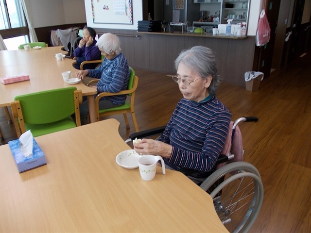 おやつを食べながら井戸端会議が始まりました