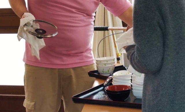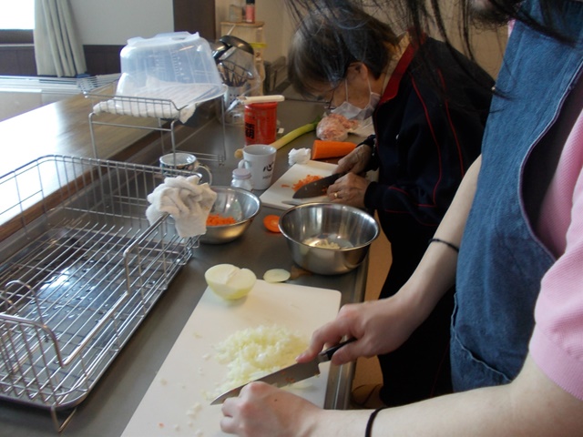 夕食作りを見ていたり