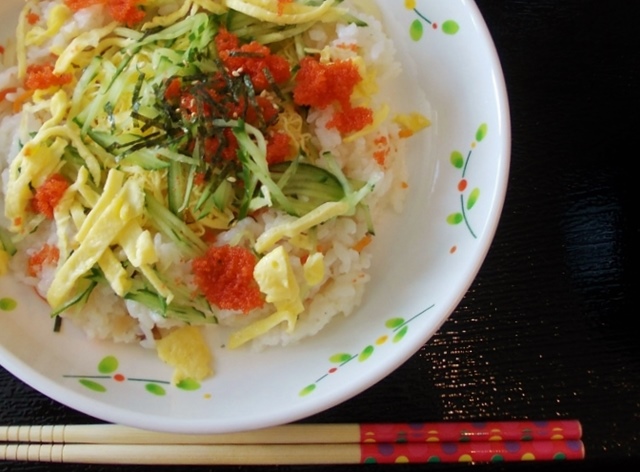 ちらし寿司の完成です。美味しくいただきました。