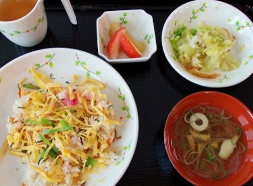 誕生日カードをプレゼントし、昼食は、チラシ寿司にしました。